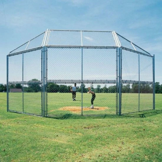 The 10′ x 10′ permanent backstop with full hood is the easiest backstop to install! This baseball / softball backstop is constructed by installing the supplied 2-3/8″ pipe supports approximately every 10′ in concrete footings. You then simply bolt the pre-fabricated 5′ x 10′ panels in place to create your finished backstop. No more cutting and stretching chain link material in the field. This backstop is extremely durable and the individual panels can be removed for re-screening or replacement as needed.