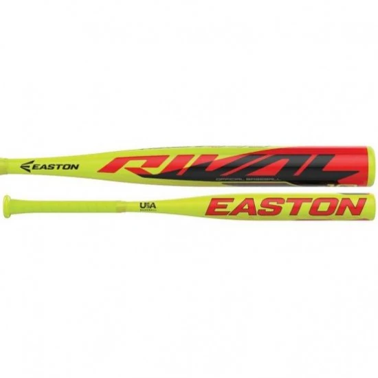 The 2019 Easton RIval -10 baseball bat features a one-piece design that is constructed of ALX50 Aircraft Grade Alloy for a lighter swing weight. A concave end cap and a cushioned Flex grip provides additional comfort. The Easton RIval -10 has a 2-1/4″ barrel and is approved for play in leagues and associations that follow the USA Baseball standard.