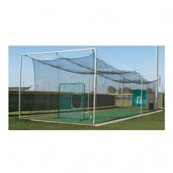 This 3-section batting tunnel frame is used with 55’L batting tunnel nets and can be used with any 12’W or 14’W net. The frame is constructed of 2″ round, 13 gauge galvanized steel tubing and has a black powder coated paint finish that will look good for many years. This system includes upright poles, cross members, ground sleeves, cable, clamps, eyebolts, turnbuckle and snap rings. The frame size after installation is 16’W x 12’H. The net will hang 11′ from the ground allowing 1′ on the ground to contain balls. This batting tunnel frame will stand up to heavy use at any level.