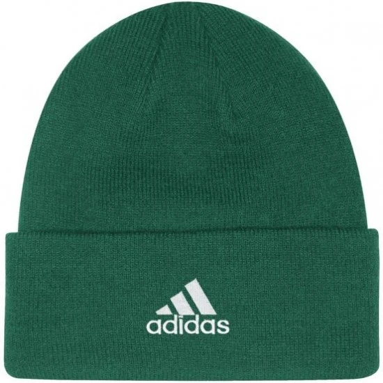 Stay warm during the winter chill while wearing the Adidas cuffed beanie. This classic hat is made of 100% acrylic knit that is soft and will help ward off the cold. It features an Adidas badge of sport logo on the fold-up cuff.