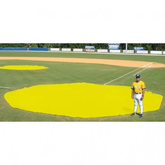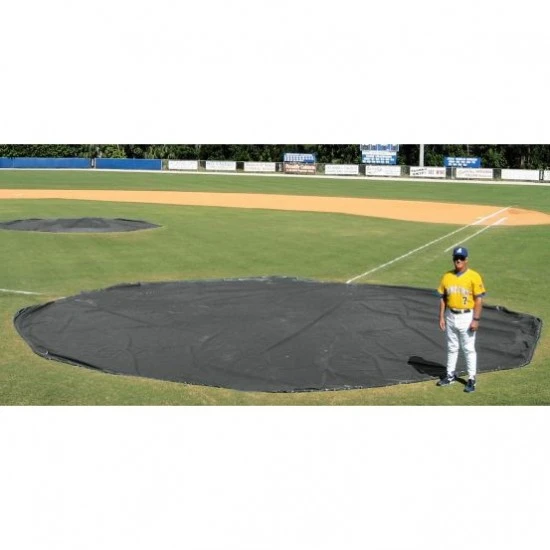 The Aer-Flo WWV1826, 26′ diameter wind weighted mound/homebase tarp weighs 111 lbs and stays put without stakes or sand bags! A steel chain is sewn into the edge hem all around the cover to keep the wind from getting under. These tarps are proven to stay down in winds over 65 miles per hour. Expertly constructed of heavy duty 18oz, UV protected vinyl that will last season after season! Save time by eliminating the need for stakes and sandbags.