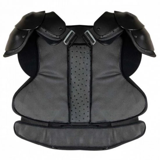 The All-Star Cobalt umpire chest protector features a low-profile countoured hard shell that uses 3.7mm thick HDPE pre-curved armor plates with hinges to conform to any body shape. The pre-curved shoulders allow this chest protector to hang on, and not slip down, for superior collarbone protection. A removable extension feature is included that adds another 3.5″ of seamless protection for taller officials. The shoulder guards can move outward by 1/2 inches for larger officials. A removable shoulder gap cap allows for an even lower profile fit. The armor plates can be bent and formed to your own desired custom shape. A patented central cooling channel with removable and washable chest pads also allows you to swap in a dry set for a long day of tournament games. The DeltaFlexâ„¢ harness has hookups in the front for easier on/off.