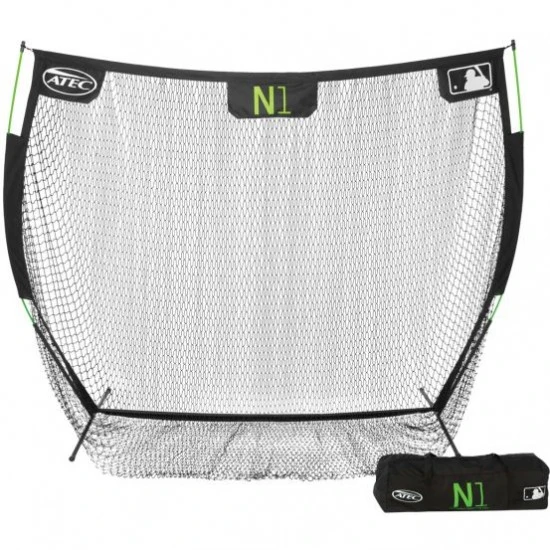 The N1 portable practice net has the industry leading and proprietary angled design that eliminates ball rebound and minimizes ball collection time. The net utilizes a steel and fiberglass frame and sets up in less than 2 minutes. Great for hitting or pitching drills. For convenience, this net comes with it’s own premium carrying bag.