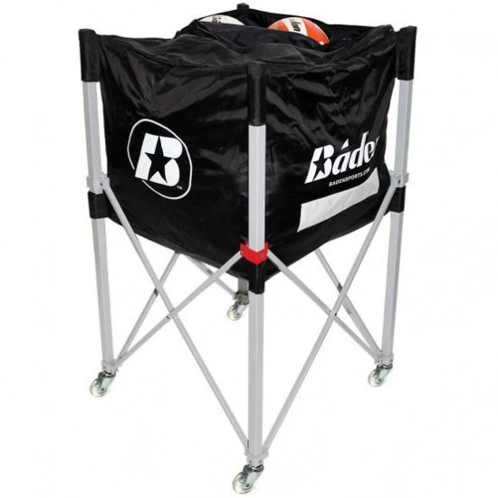 Baden’s deluxe volleyball cart holds up to 24 volleyballs and up to 12 basketballs in its reinforced nylon bag. A tempered aluminum frame adds strength to the cart’s lightweight design. A zippered top cover keeps balls secured. Push button locking system for easy setup and takedown.