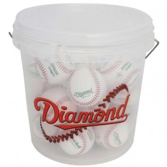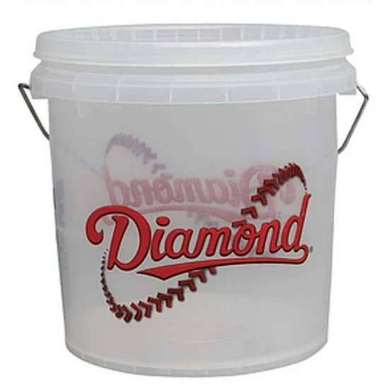 The under-sized Diamond 2.5-gallon bucket holds 2 dozen baseballs and is a more manageable size than larger buckets. The bucket and lid are made of a clear material so you can see how many balls are in the bucket. The handle provides easy transport.