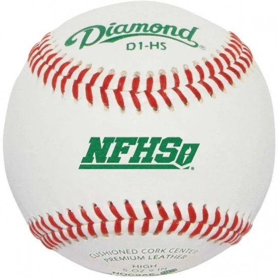 The Diamond D1-HS NFHS Official Baseball features DriCore technology, which helps prevent a baseball from absorbing water and gaining weight in wet field conditions. DriCore will accelerate the drying time is a ball is subjected to extreme water conditions, making the baseball playable sooner. The D1-HS baseball is designed with a cushioned cork center, select grey wool windings, premium full-grain leather for enhanced durability and Diamond Seam (raised red seams) for excellent control and grip. This NFHS and NOCSAE approved baseball is Diamond’s most popular selling high school ball. Sold by the dozen only.
