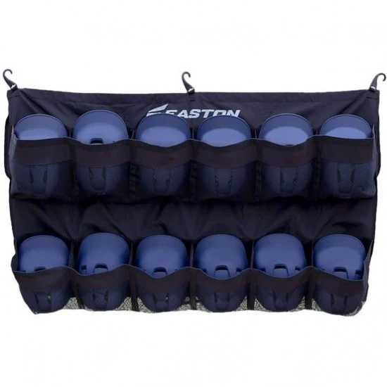 The Easton 12 team helmet bag features strong nylon straps, a carrying handle, and three “J” style hooks. This team hanging bag is constructed of 600d polyester and mounts on any chain link fence.