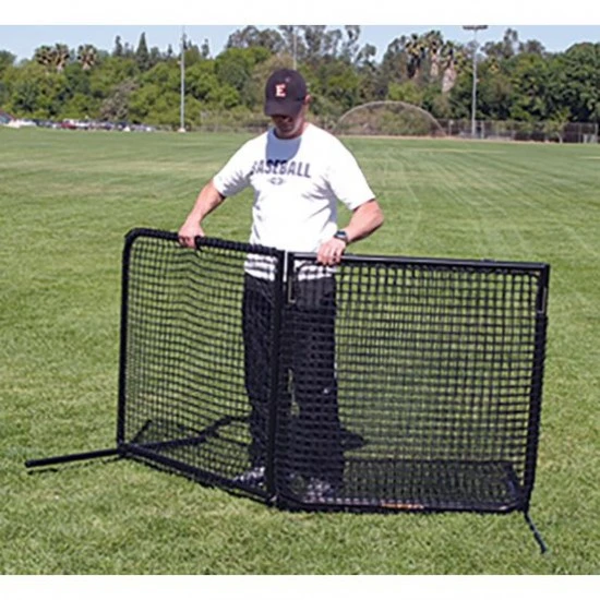 This fully portable L pitching screen measures 7’W x 7’H when assembled and features a two-sided, weather treated net and a durable steel frame. The screen collapses to a size of 41”L x 42’W’ x 6″H, for easy transport.