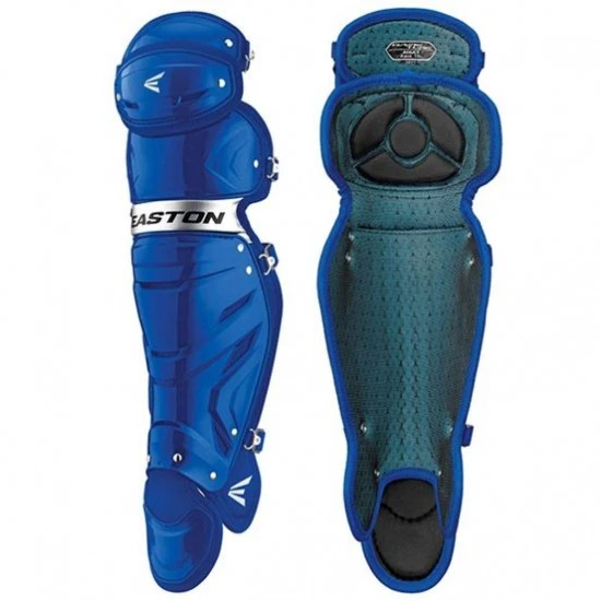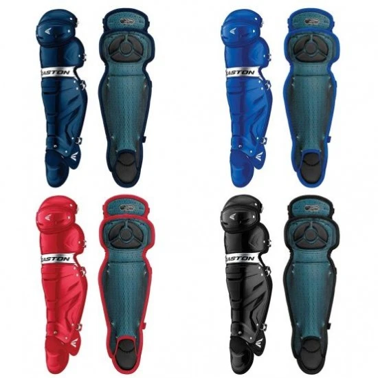 The Easton Gametimeâ„¢ catcher’s leg guards have a durable, reinforced wide knee design that gives you a more comfortable fit. The Gametime adult leg guards measure 16.5″, intermediate measures 15.5″, and youth measures 14″. These leg guards feature a reinforced knee system that improves fit and security when moving in and out of the squat, a wide-set knee design that provides a larger surface area in the blocking position, and a vented shell with breathable EVA foam liner for increased airflow and breathability. The toe extension is available on the Adult model only, and a triple knee design is offered on the Adult and Intermediate sizes. The Youth leg guards feature a double knee design, providing an ideal fit for smaller players.