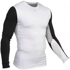 Easton’s Mako performance top is a durable compression shirt that aides in faster muscle recovery. There is Sealon appliqué on the forearms for reduced friction and abrasion resistance and bonded layers at the forearm for shock absorption. Mesh inserts on the back and under the arms provide ventilation and mobility.
