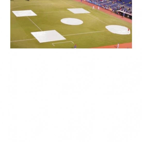 FieldSaver base covers keep your field game-ready in all weather conditions. The 10′ square spot covers are much easier to handle than full infield covers at a fraction of the cost and it keeps the most important areas of the infield dry.The woven polyethylene material is the lightest material available for a field cover making it very easy to use. Ground stakes are included to secure the cover or see below for optional sand bags.