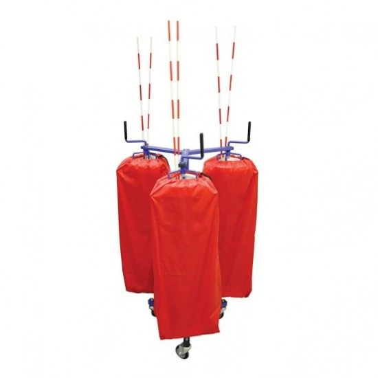 The Jaypro VNK33 volleyball net storage cart easily stores three of any size voleyball nets with strong steel construction. Protects the net headband by keeping it tightly wound and tangle free. Non-marring 4″ swivel casters glide easily over gym floors. Three storage bags for nets are included.