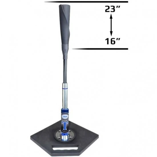 The Jugs short T batting tee is the ideal solution for hitters working on the pitch at the bottom of the strike zone, adjusting from 16” to 23” via its telescoping stem. The 14” x 11” steel base is sturdy and doesn’t require extra weight to stay up. The 1/4” base is encased in round rubber edges that won’t scratch or scuff your gym floor and features a grip-n-go handle for easy transport. The always-feel-the-ball flexible top on the stem allows hitters to feel the ball on contact rather than the tee. The patented internal interlocking bolt design prevents slippage of the upper tee stem making the Jugs short T a high-quality solution for hitting drills at any skill level.