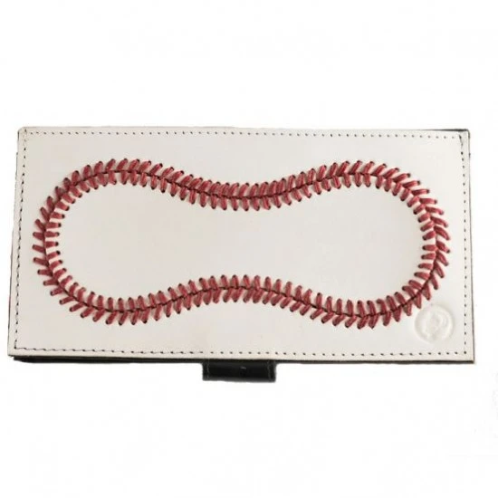 This checkbook is made from baseball leather with waxed red stitching that gives this product the unique professional baseball feel. Any baseball player, fan, or coach will appreciate this authentic sports-themed accessory.