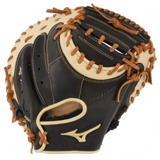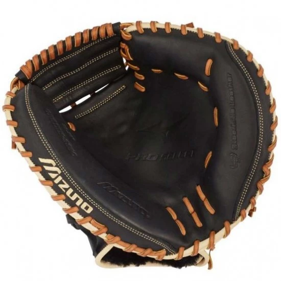 The Mizuno 33.5″ GPS1BK-335C Pro Select baseball catcher’s mitt is made from a US Steerhide leather to last you the entire season. It is extremely firm and durable to get you through every inning. The Steersoft elite palm liner provides you the exceptional feel you need to go out there every inning behind the plate.