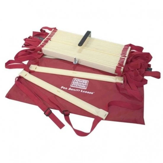 The Power Systems Pro Agility Ladder features a unique quick-change latch that lets you adjust the placement of the slats and lock them into position. Use narrow spacing for short and quick steps or wider spacing for longer strides. The 30′ Pro Agility Ladder separates into two 15′ sections for training variety. Stakes keep the agility ladder stable when using it outdoors; loops let you attach weight plates to hold it in position indoors. The Power Systems Pro Agility Ladder is a versatile ladder and the ultimate foot work training device.