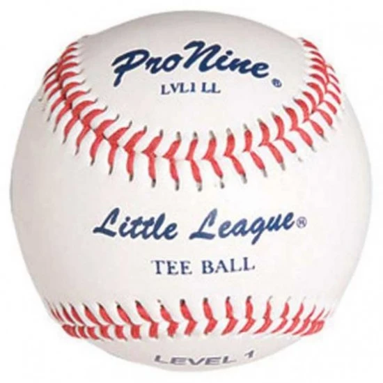 Pro Nine LVL1 LL official Little League level 1 tee balls are rated for official youth league and tournament play. These tee balls have medium seam height for small hands, durable rubber center, low compression, tough tacky grip synthetic cover, kid safe 3P-free vinyl covers, and are ideal for both coach and machine-pitch leagues.