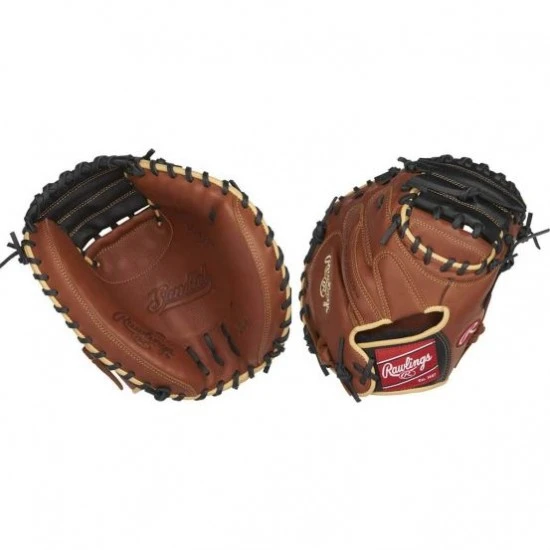 The Rawlings Sandlot 33″ Catcher’s Mitt, item # SCM33S, is built with oiled pull-up leather that gives the glove a unique vintage look and feel with minimal break-in required. This 33″ baseball catcher mitt is further enhanced with a pro style pattern and is designed to be taken straight from the shelf to the field.