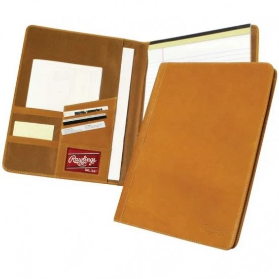 The Rawlings leather portfolio notepad is made from the same leather as their premium Heart of the Hide gloves for those who demand functionality, durability and style. This portfolio features a large interior pocket, 2 small pocket slots, 4 card pocket slots, a pen loop, and a letter-sized memo pad.