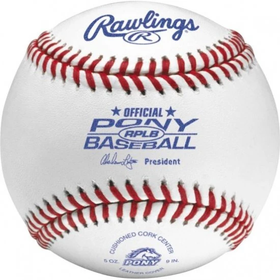 The Rawlings RPLB tournament pony baseball has Rawlings superstitch raised seams with full grain leather cover and composite cork which makes it perfect for Pony League Baseball.