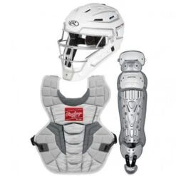 - The Rawlings Velo ADULT catcher’s gear set includes a Velo 2.0 hockey-style catcher’s helmet, a Velo series NOCSAE commotio cordis specified chest protector, and Velo series leg guards.