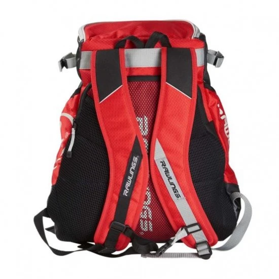 This Rawlings Veloâ„¢ Backpack measures 19.5″H x 17″W x 9″D and is the perfect bag to carry your gear to the diamond. The Velo backpack holds up to two bats and features a large main compartment that converts to a convenient shelf for easy access to your gear during the game. This backpack also has a pocket for your laptop or your tablet, a fleeced lined pocket for your phone, a sturdy fence hook, two external velcro strips for batting glove storage, and a compartment for your helmet and shoes.