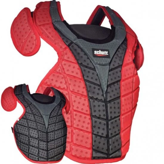 The Schutt S3.5 catcher chest protector features Schutt’s exclusive reversible design that allows you to show your home or away team colors. One side of the S3.5 features a two-tone color scheme while the reverse side comes in a blackout design. The S3.5 chest protector is built with permeable wide weave mesh over hundreds of highly perforated protective foam panels, providing maximum ventilation and comfort without sacrificing performance or protection.The S3.5 chest protector’s universal design accommodates both male and female catchers for use in baseball and softball. The S3.5 is equipped with a unique V-back harness system that conforms to the shape of your back and shoulders for maximum coverage and protection.