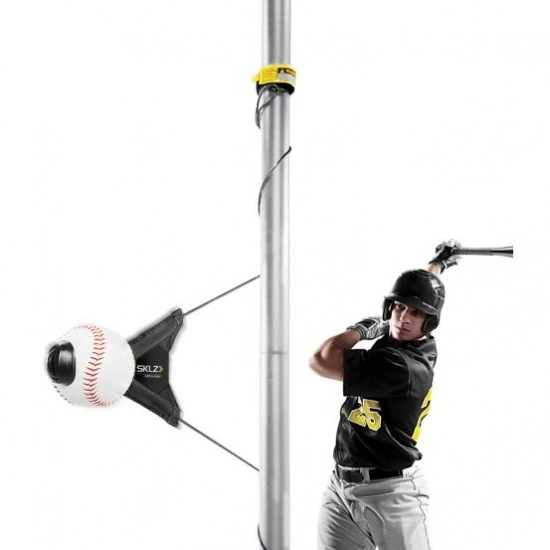 The SKLZ Hit-A-Way trainer is the #1 selling baseball swing trainer because of it’s ability to help develop better swing and stance mechanics without ever having to chase a ball. The trainer easily attaches to any pole or tree with strong Velcro straps that can be fastened at any height. The tethered ball has a twist-back design that simulates a real pitch and can be hit up to 500 times per hour.