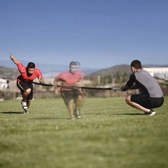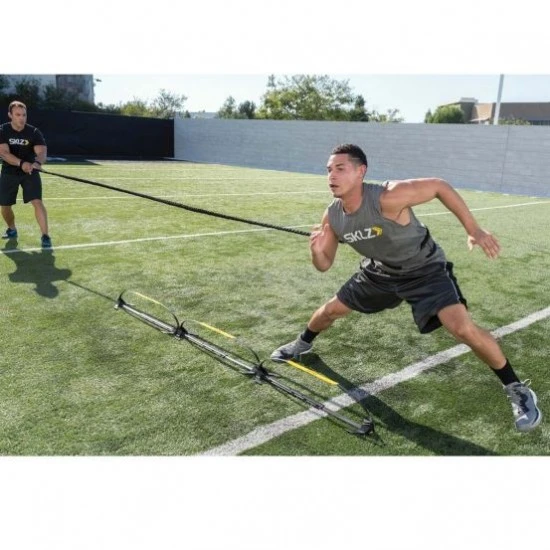 The SKLZ Recoil 360 resistance trainer helps serious athletes maximize power, speed and vertical jump. The SKLZ Recoil is engineered with a “free floating” ring for 360 degrees of movement, providing you with the flexibility to conduct multi-directional training and use with or without a partner. The Recoil 360’s sheathed cable stretches from 8 to 22 feet, giving you the distance you need for any drill and any training movement. The Recoil 360 increases in resistance as you stretch it further, going from 8 lbs up to 50 lbs of resistance. This increase forces you to drive harder and stay active in your base, creating more powerful, explosive movements. Athletes know that sports do not take place in a single direction. That’s why the Recoil 360 resistance and assistance trainer is the perfect tool to maximize your speed, power, and performance on the field or on the court.