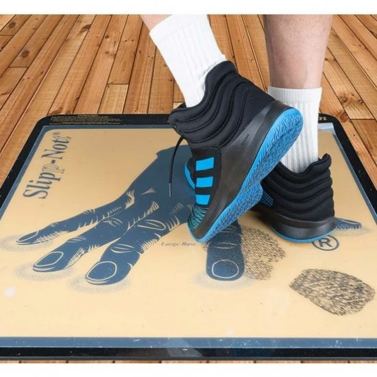 Get a grip on the court with the Slipp-Nott sticky mat shoe traction system. The Slipp-Nott traction system eliminates hand wiping of shoe soles to gain better traction and less slippage. This sticky mat system is ideal for basketball, volleyball and other indoor sports. Removes dust, dirt and wax build-up from athletic shoe soles with one quick action. Ribbed rubber bottom for floor protection. For storage, keep the mat flat and out of the sun. Contains one large LS60 shoe traction base. Traction sheets sold separately (see below).