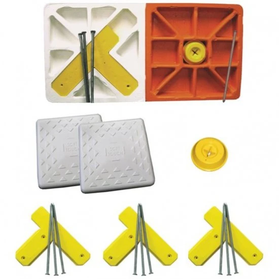 This set of spike-down, Soft Touch bases includes (1) double first base and (2) 14″ x 14″ x 2-1/2″ bases. Spike-down bases combine an exclusive Soft Touch base design with a spike-down mounting system that can be installed on any grass or dirt area. Use these bases on any field when square Soft Touch ground anchors are not present. Simply drive the spikes through the yellow disc or “T” mounting anchor and mount the base the the anchor. The double first base is designed for player safety to avoid interference with the feet of the runner. The bases are designed to flex and absorb energy as a player slides into the base. Â In the case of uncontrolled slides, the “Progressive Release” action allows the base to flex until enough force is applied to “pop” the base free from the mount.