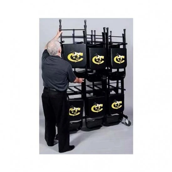 The Chair Caddie has padded hanging racks to protect chairs. Large, heavy-duty swivel wheels make it easy to move chairs from one room to the next. Fits through most commercial doorways when loaded.