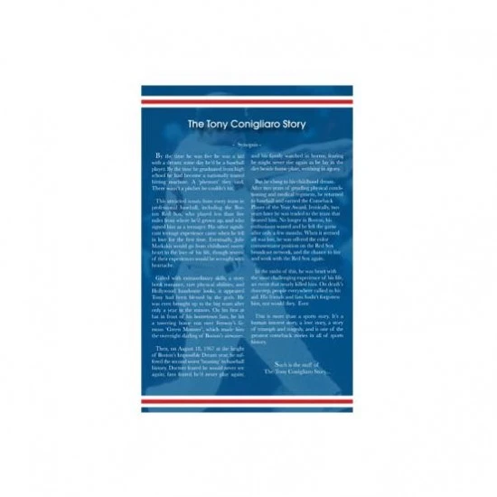 The Tony Conigliaro Story – Synopsis – By the time he was five he was a kid with a dream: some day he’d be a baseball player. By the time he graduated from high school he had become a nationally touted hitting machine. A ‘phenom’ they said. There wasn’t a pitcher he couldn’t hit. This attracted scouts from every team in professional baseball, including the Boston Red Sox, who played less than five miles from where he’d grown up, and who signed him as a teenager. His other significant teenage experience came when he fell in love for the first time. Eventually, Julie Markakis would go from childhood sweetheart to the love of his life, though several of their experiences would be wrought with heartache. Gifted with extraordinary skills, a story book romance, rare physical abilities, and Hollywood handsome looks, it appeared Tony had been blessed by the gods. He was even brought up to the big team after only a year in the minors. On his first at bat in front of his hometown fans, he hit a towering home run over Fenway’s famous ‘Green Monster’ that left the park, which made him the overnight darling of Boston’s airwaves. Then, on August 18, 1967 at the height of Boston’s Impossible Dream year, he suffered the second worst ‘beaning’ in baseball history. Doctors feared he would never see again; fans feared he’d never play again; and his family watched in horror, fearing he might never rise again as he lay in the dirt beside home plate, writhing in agony. But he clung to his childhood dream. After two years of grueling physical conditioning and medical regimens he returned to baseball and earned the Comeback Player of the Year Award. Ironically, two years later he was traded to the team that beaned him. No longer in Boston, his enthusiasm waned and he left the game after only a few months. When it seemed all was lost, he was offered the color commentator position on the Red Sox broadcast network, and the chance to live and work back home again. In the midst of this, he was beset with the most challenging experience of his life, an event that nearly killed him. On death’s doorstep, people everywhere rallied to his aid. His friends and fans hadn’t forgotten him, nor would they. Ever. This is more than a sports story. It’s a human interest story, a love story, a story of triumph and tragedy, and is one of the greatest comeback stories in all of sports history. Such is the fabric of The Tony Conigliaro Story…